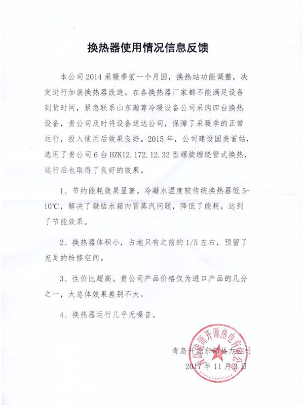 • 山東瀚尊冷暖設(shè)備有限公司坐落在美麗的齊國古都---淄博,是一家以換熱(冷凝)產(chǎn)品研發(fā)、生產(chǎn)、營銷為一體的企業(yè);自2008年以來,通過與中外知名熱力設(shè)備制造商合作以及自主探索和創(chuàng)新,于2010年成功研制生產(chǎn)出了公司第一臺螺旋纏繞管式換熱器;同時,公司依托自身強(qiáng)大的技術(shù)力量和研發(fā)能力,于2016年成功研制生產(chǎn)無死角無菌級雙管板式換熱器,近年來,公司努力走在中國換熱器行業(yè)的前列,致力于創(chuàng)造民族品牌,為用戶提供專業(yè)技術(shù)支持與服務(wù)......